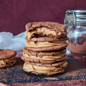 • Kremu nanesite pomoću vrećice na jednu polovinu keksića te poklopite s drugim keksom.